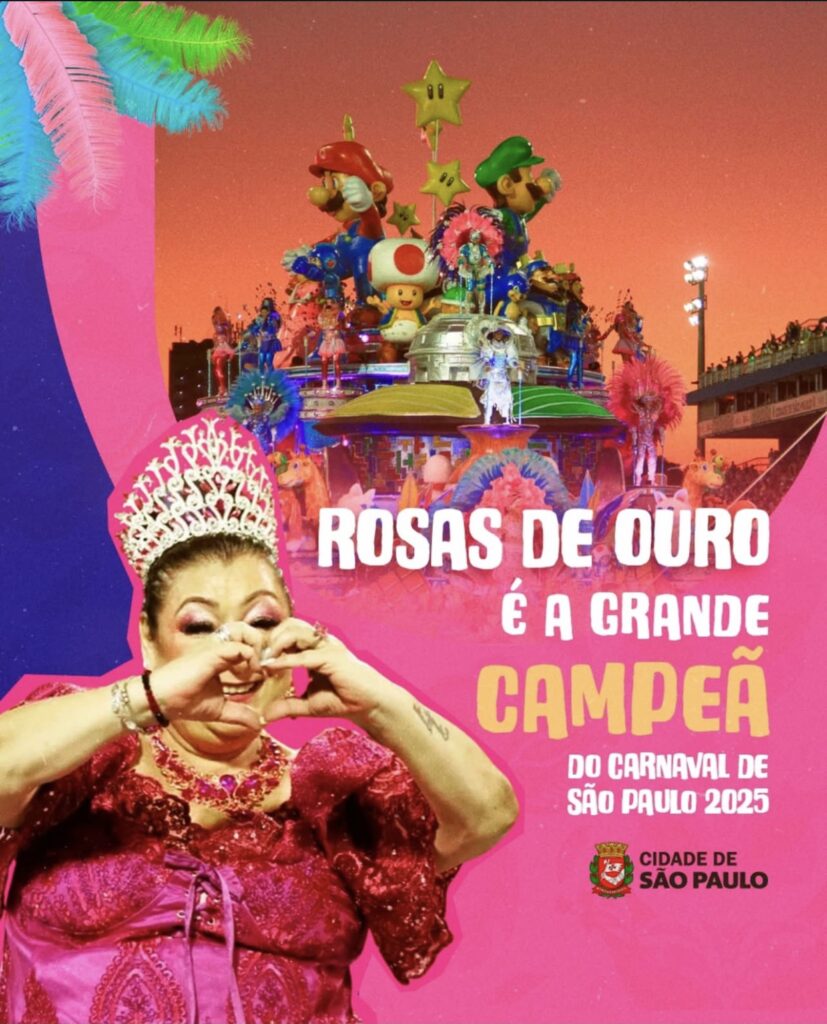 A Sociedade Rosas de Ouro foi a grande vencedora do desfile das escolas de samba do carnaval de São Paulo de 2025. A agremiação obteve 269,8 pontos, seguida da Acadêmicos do Tatuapé (269,8 pontos) e da Gaviões da Fiel (269,7 pontos).